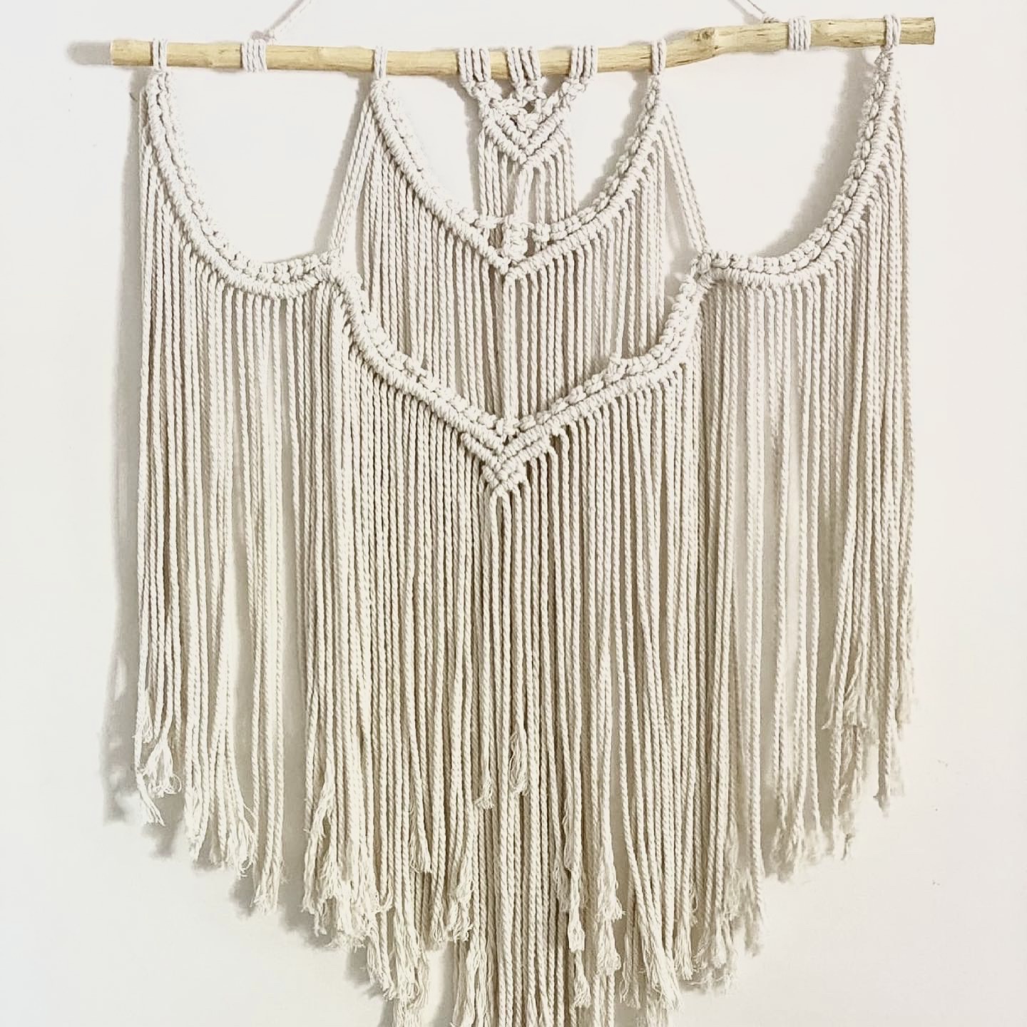 Tapiz de macramé hecho a mano con 100%  algodón.